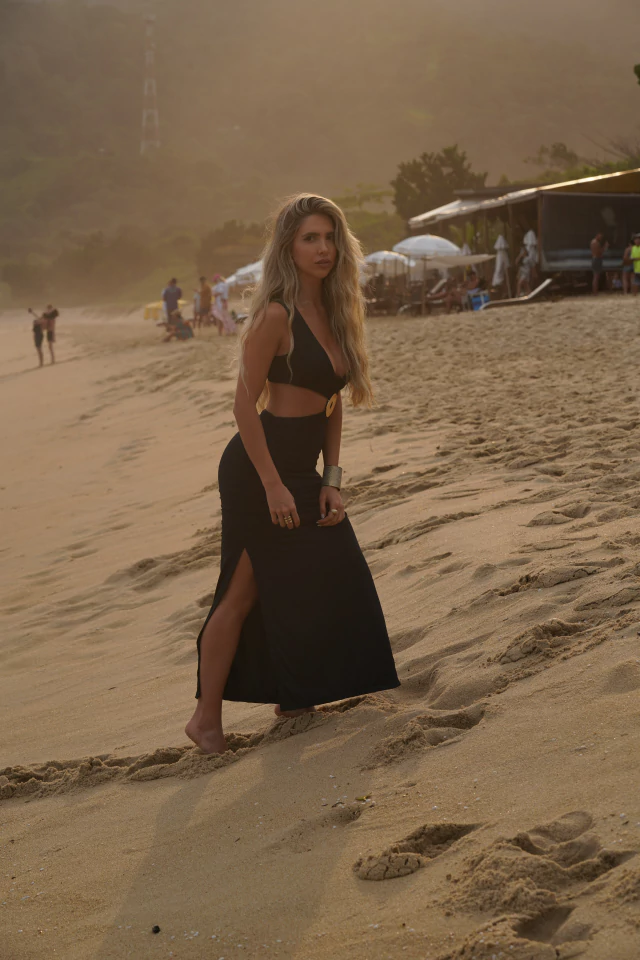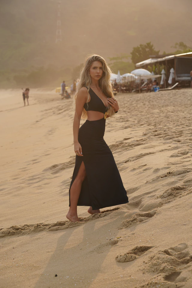 Apresentamos o Vestido Amara, uma peça que exala sofisticação e charme. Com seu design longo e recortes na cintura, este vestido foi pensado para valorizar as curvas de maneira única.